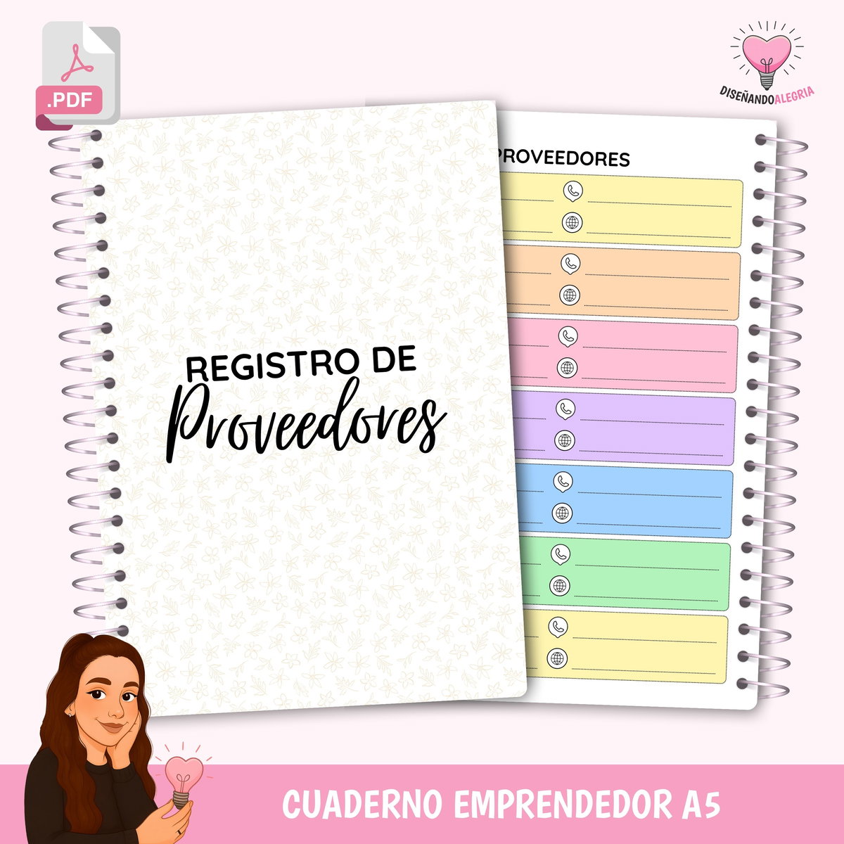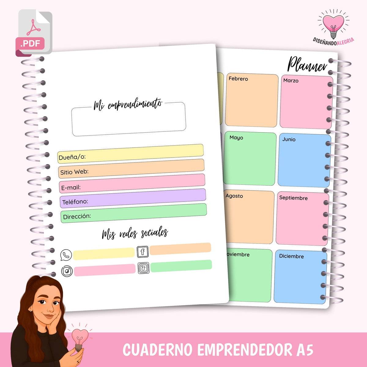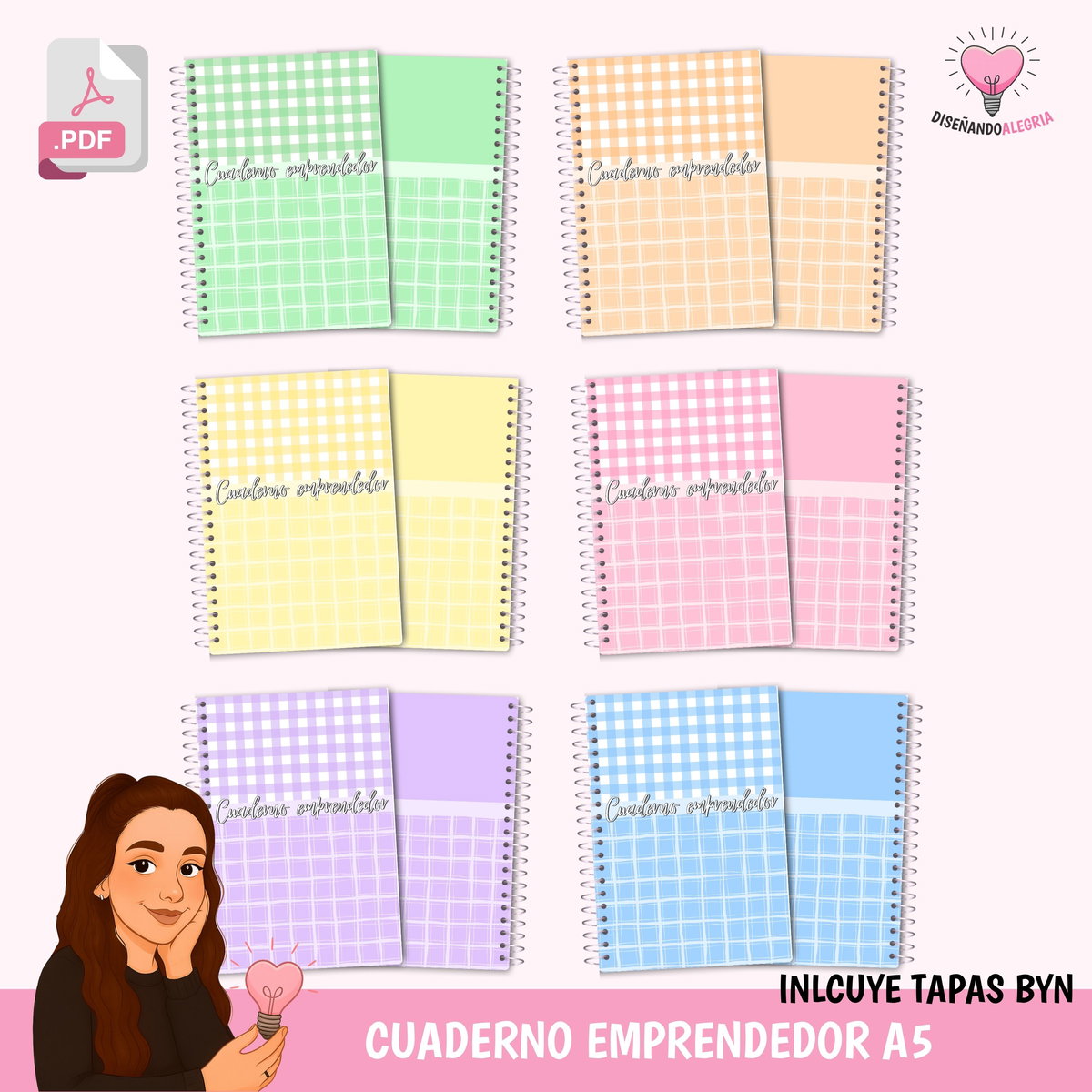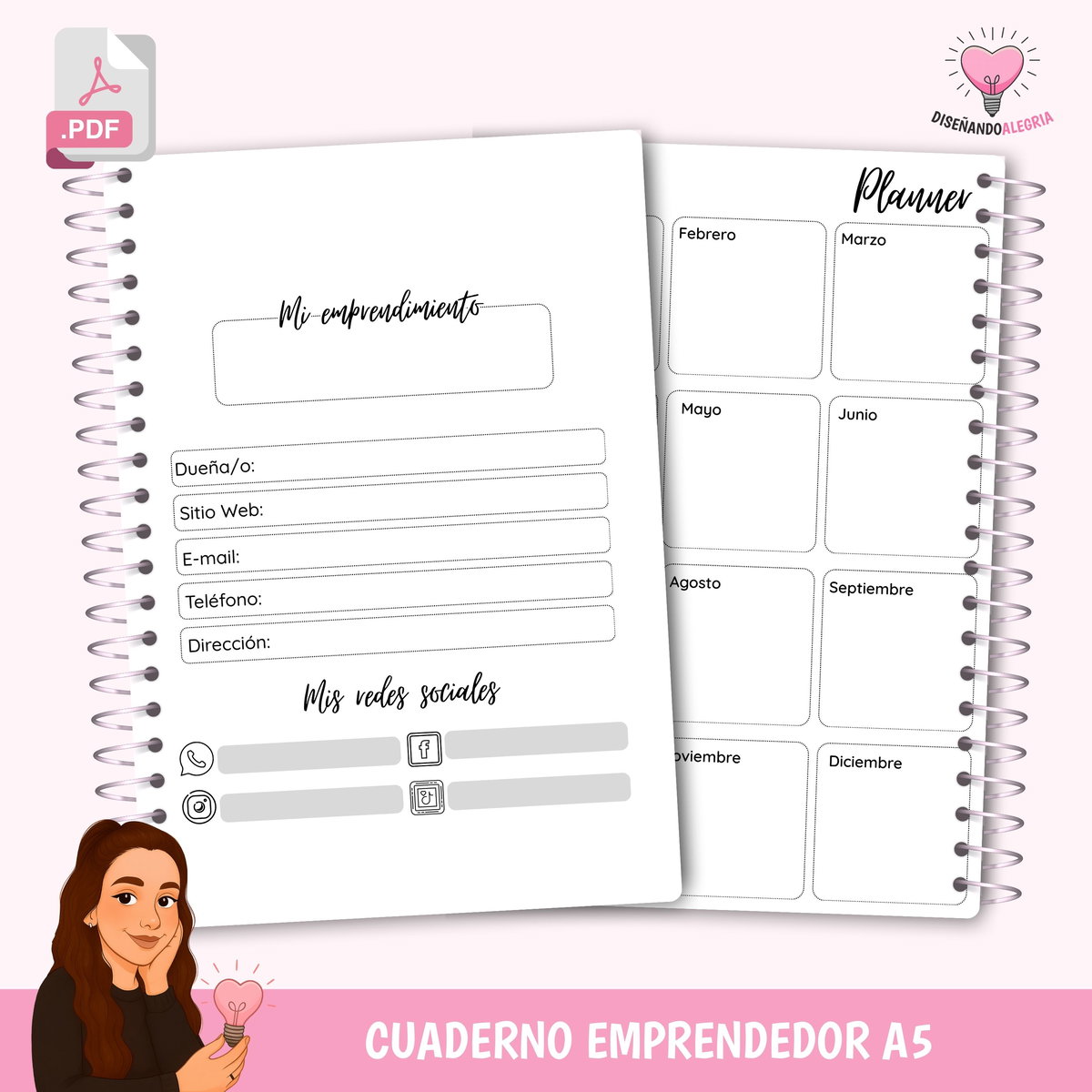 Este pack de archivos PDF está diseñado específicamente para que puedas producir y vender cuadernos de organización para emprendedores