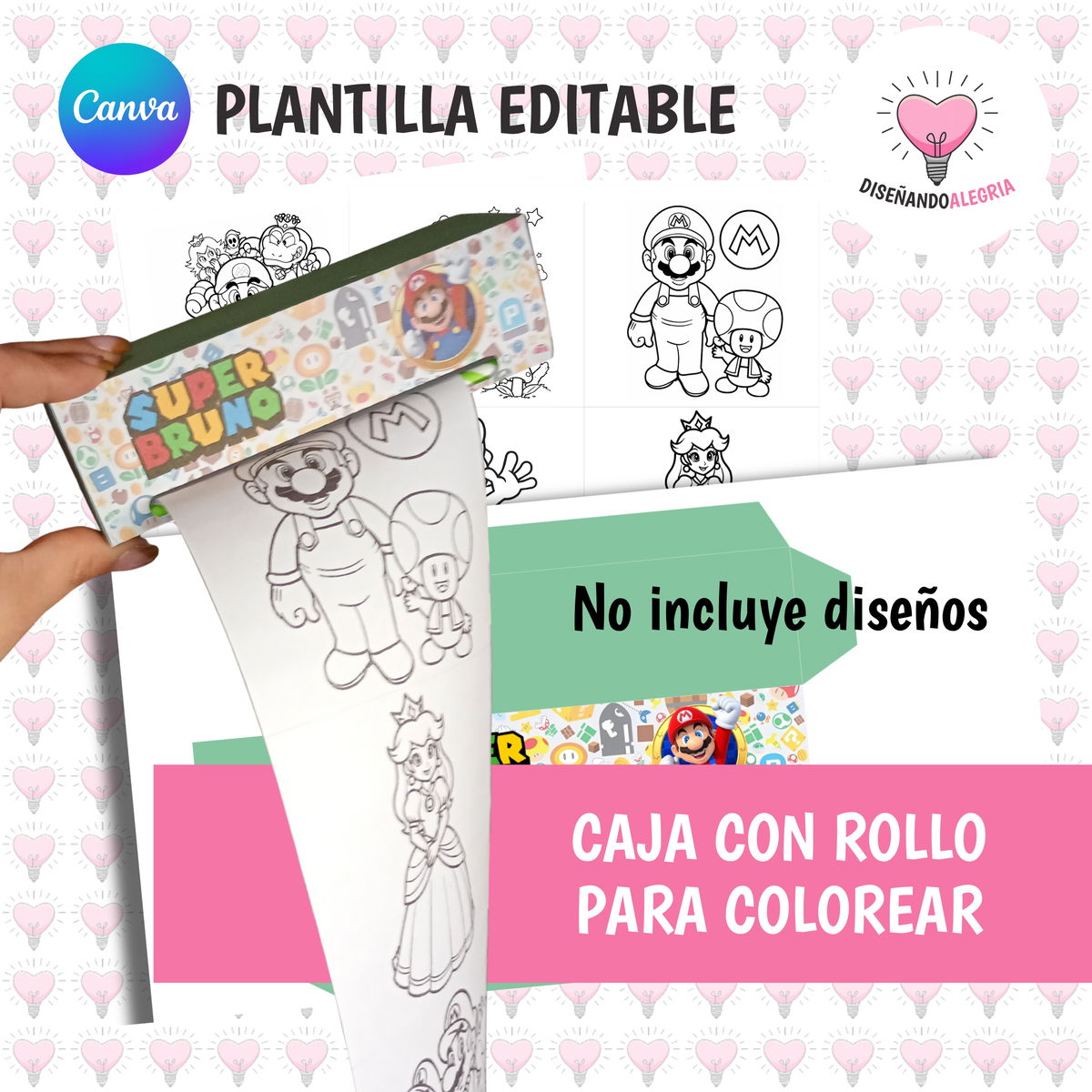 Para armar este souvenir utilizamos un hoja a4 para la cajita y 2 hojas a4 para los dibujos para colorear.