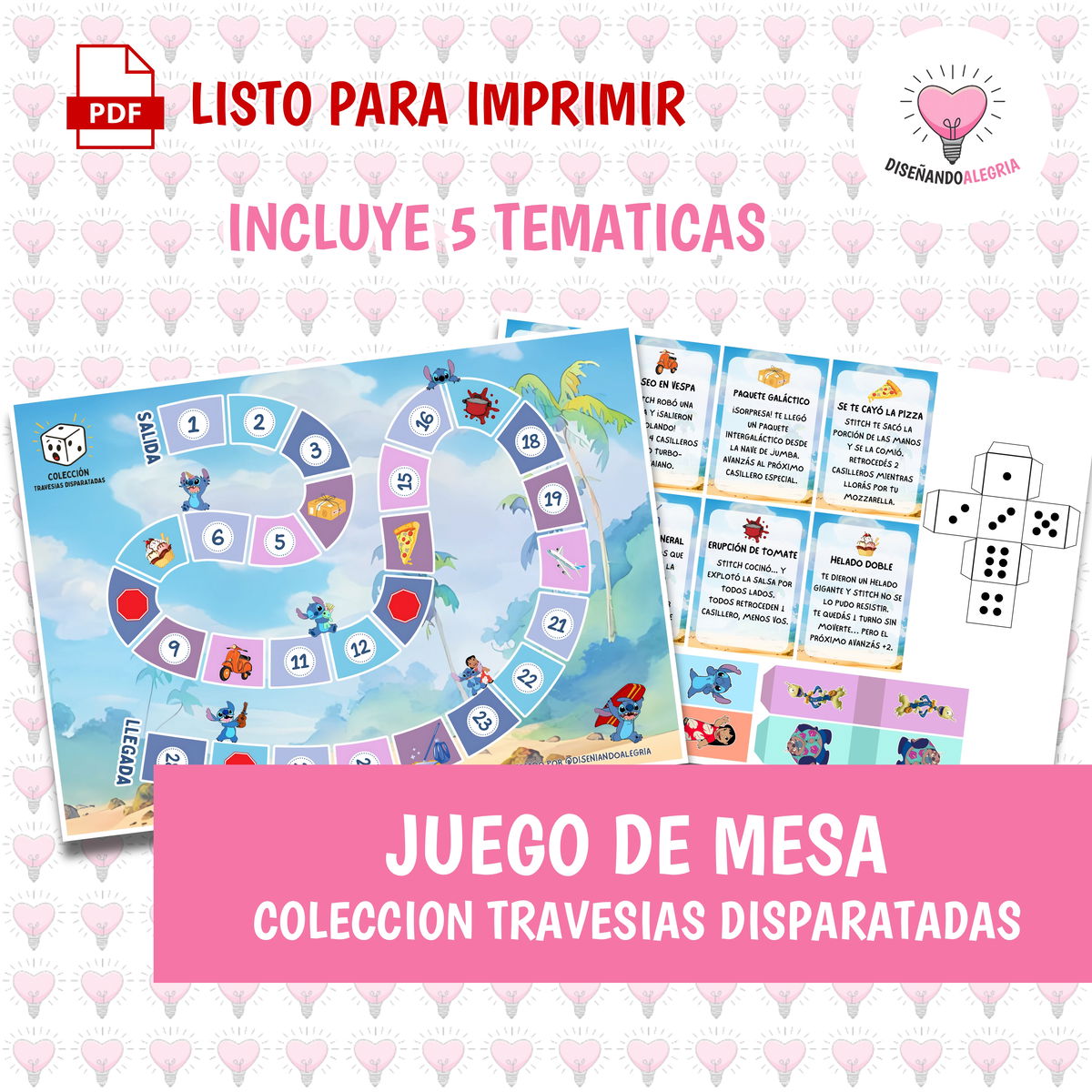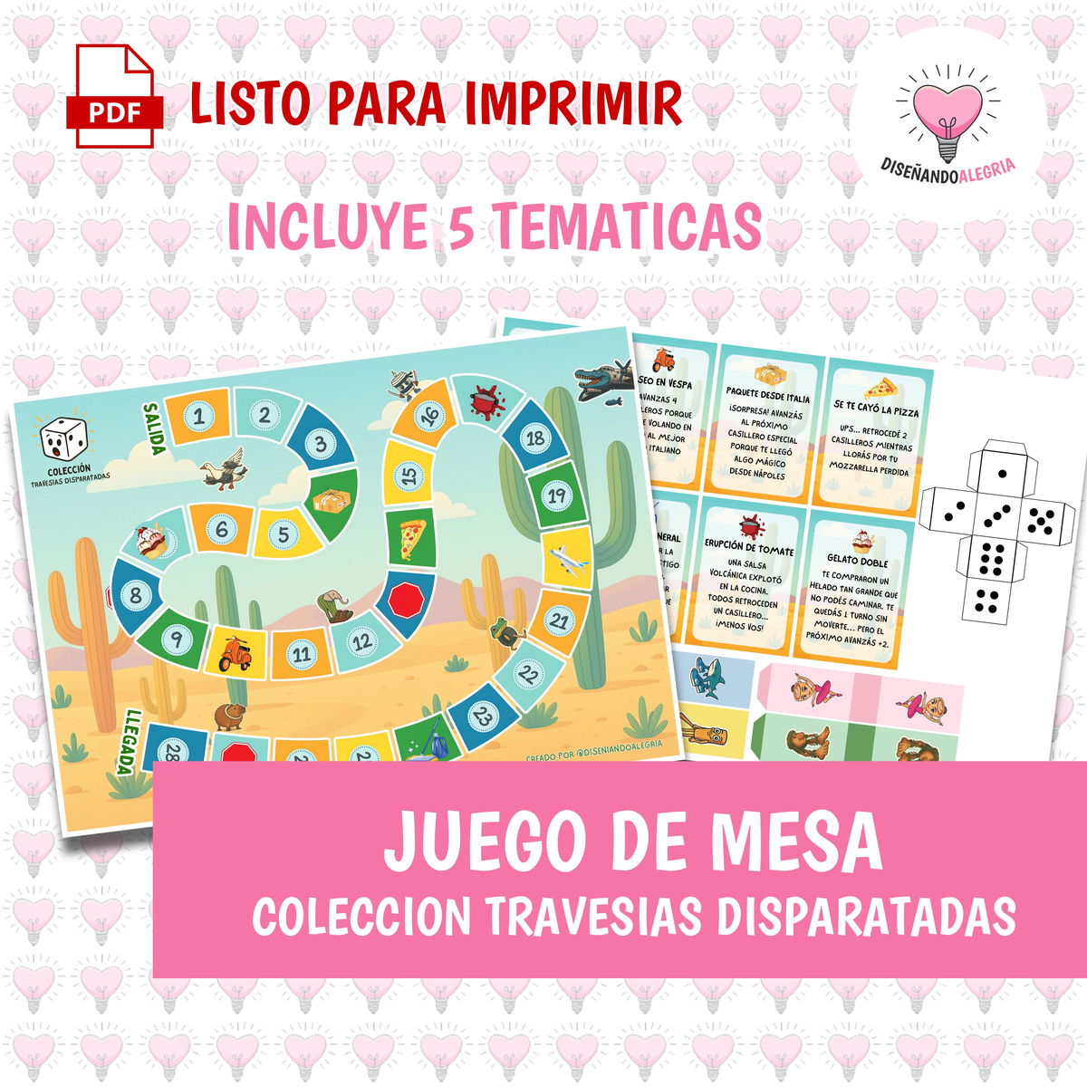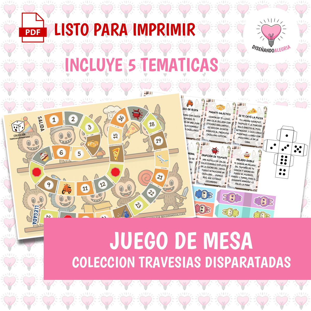 PDF imprimible NO EDITABLE, incluye 5 temáticas de juego de mesa