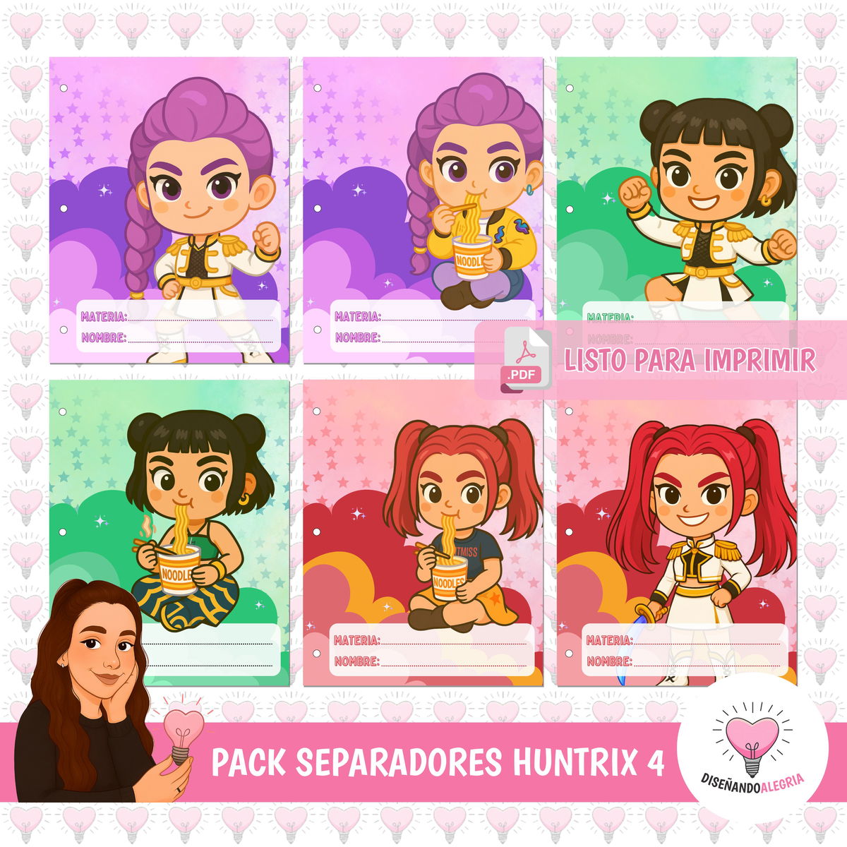 IMPORTANTE: Al comprar estas adquiriendo un PACK IMPRIMIBLE de 6 diseños de caratulas escolares N°3