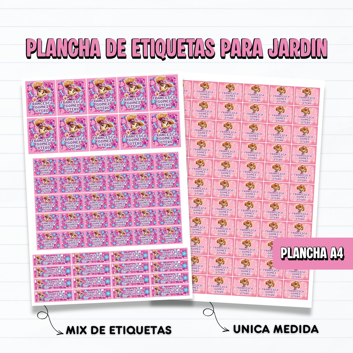 Plancha de etiquetas para recortar, ideales para que los chicos puedan identificar sus pertenencias fácilmente.